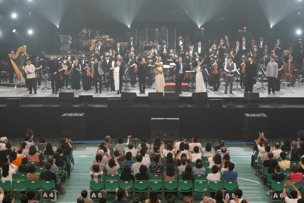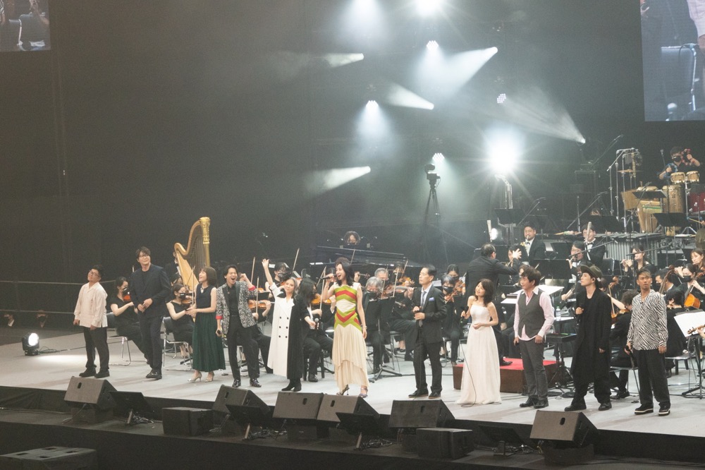 柔らかなストリングスが印象的だった「愛の中へ」は、矢井田瞳が優しく、愛情を感じさせてくれる歌を披露。ソン・シギョンは、このコンサートの基点になっているアルバム『オフコース・クラシックス』(2019年)でも歌っている「君住む街」へを披露。歌詞の行間に浮かぶ感情までも、丁寧に掬いとって表現するように歌ってくれる。CHEMISTRYが歌った「眠れる夜」では客席から手拍子が起き、オーケストラの演奏も一段と熱が入る。ラストナンバーは「YES-YES-YES」。まずMs.OOJAが登場し、歌い始めると、この日のキャストが徐々にステージに登場。この曲も静かな始まりから徐々に盛り上がっていき、爆発的なサビで盛り上がる壮大な曲だが、最後はオールキャストが登場。