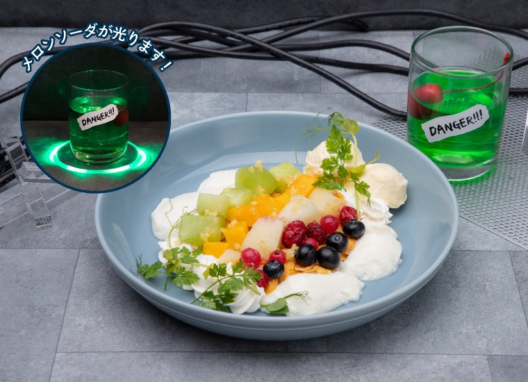 カフェメニューには、『HOCUS POCUS 3』に収録されているNsy Film「RESET」の世界観を表現したメニューが登場。ギミックが施されたメロンソーダのパフェに加えて、同アルバムの収録楽曲のMVとリンクしたフード、ドリンクメニューも豊富に用意される。「Get You Back」をコンセプトにした、「あっちもHot、こっちもHot」な2種類のカレープレート、「Trippin」のダンスフロアをイメージしたドリンクなどが楽しめる。