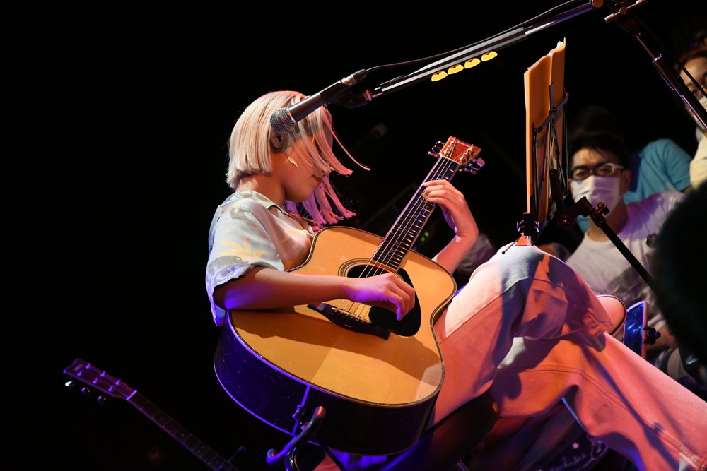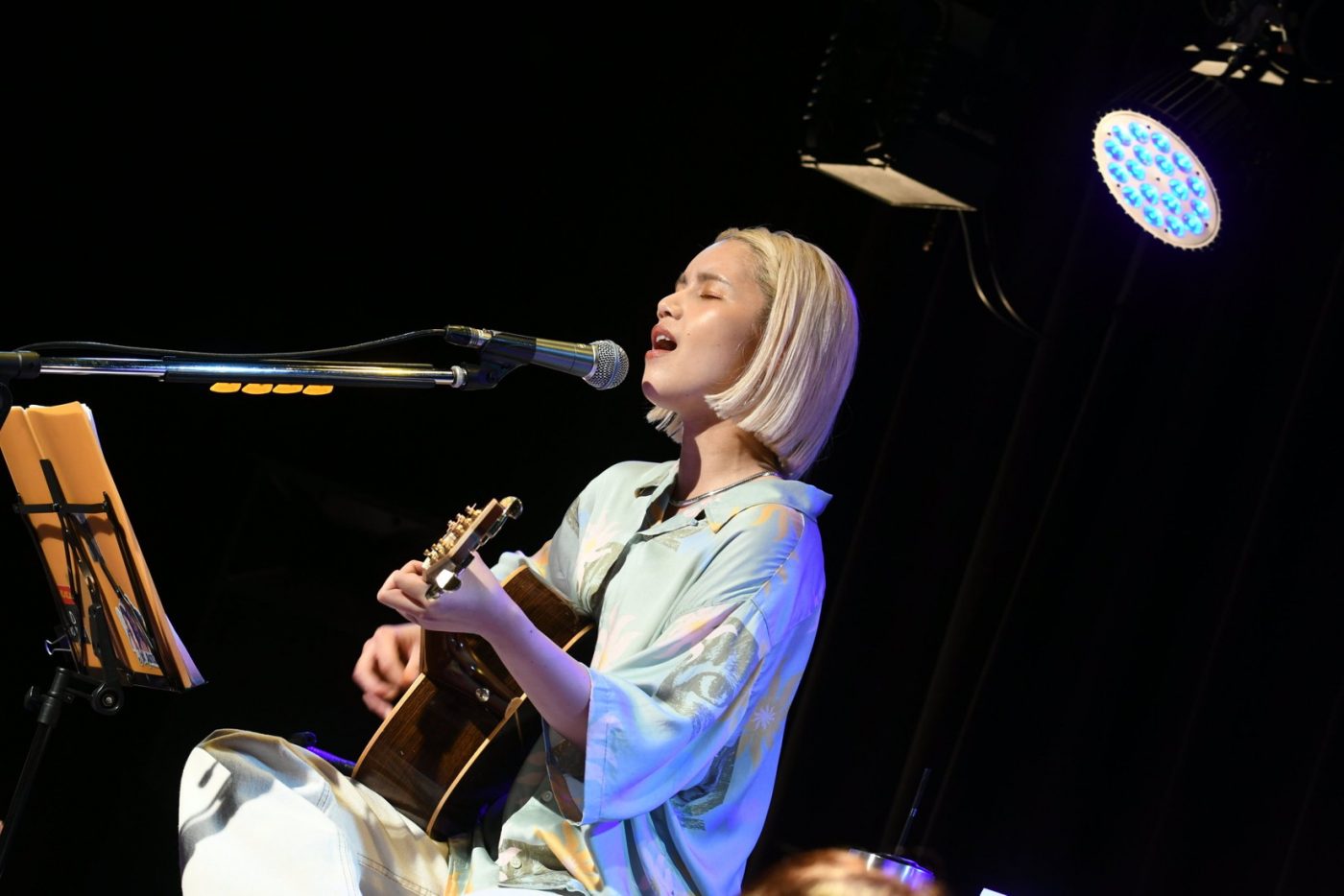 3曲目「KOMOREBI」、優しいギターに乗せて語られたこの曲は、6月にリリースされたばかりの新曲だ。暑い日差しのなかで見つけた日陰のような安心感に包まれていく。