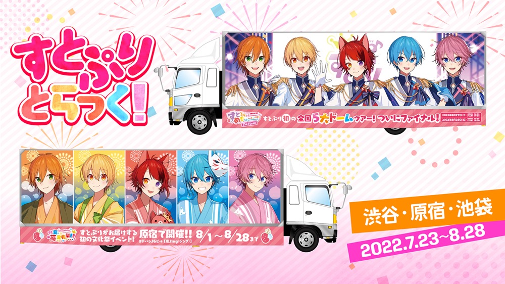 なお、すとぷりは、文化祭をテーマにした初のイベント『Strawberry Summer!! すとぷり 夏の苺文化祭!!』(8月1日〜28日/東京・ヨドバシJ6 ビル)や、渋谷・原宿・池袋での「すとぷりとらっく」の走行、全国36都道府県での街頭ビジョン放映など、夏を盛り上げるイベントが盛りだくさん。
