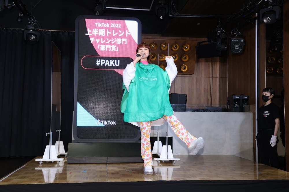 「TikTok2022上半期トレンド」チャレンジ部門賞は「#PAKU」に決定。「#PAKU」はasmiの楽曲で、作詞・作曲は「なにやってもうまくいかない」で知られるmeiyoが担当した。可愛い振り付け投稿が人気となり、投稿数はチャレンジ部門ノミネート10選の中で最も高い結果となるなど、TikTokに大きな影響を及ぼしたため受賞となった。結果発表時には、asmiが「PAKU」の生歌唱を披露した。