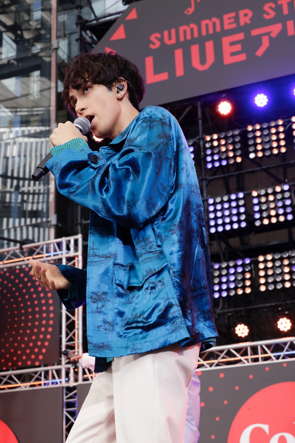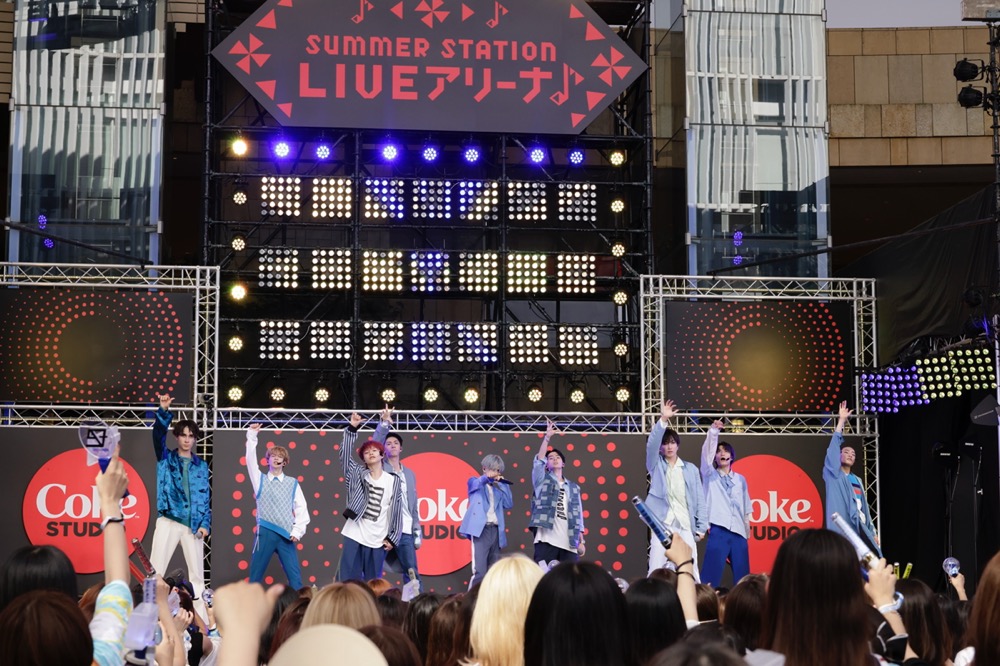 9人組ミクスチャーユニットのSUPER★DRAGONが、7月24日に『コカ・コーラ SUMMER STATION ⾳楽LIVE』の初日ステージに登場した。このイベントは毎年夏にテレビ朝日が主催している『テレビ朝日・六本木ヒルズ夏祭り SUMMER STATION』の一環として行われているものだが、2021年、2020年はコロナ禍により見送りとなったため、六本木ヒルズアリーナでの音楽LIVEも実に3年ぶりの開催に。加えてSUPER★DRAGON自身、4月にツアーを終了して以来3ヵ月ぶりのライブということで、集まったBLUE(SUPER★DRAGONファンの呼称)の熱気もMAXだった。満員の客席を前に、9人は新境地を拓いたポップな新曲から今の季節にピッタリのサマーソング、そして彼らの真骨頂とも言えるアグレッシブなミクスチャーロックと、今、持てる力を余すところなく発揮。3年ぶりとなった“サマステ”再開の狼煙を、その間の成長も確かに示しながら見事にあげてみせた。