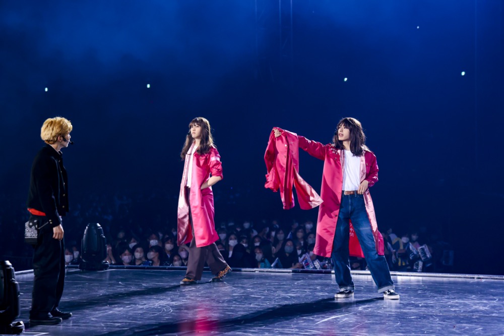 さらに、小森隼が「玲於がいないんだよ。玲於!?」と呼びかけると、那須川天心が『THE MATCH 2022』で着用していた衣装に身を包んだ佐野玲於が、格闘家さながらのポーズでセンターステージに入場。終始笑いの絶えないファッションショーだったが、佐野の後を追うようにゲストとして現れた那須川本人の「緊張してますけど、なんかあったら全員倒せるので(笑)」という最強の一言が、真の『BATTLE OF TOKYO』の幕開けを告げた瞬間でもあった。