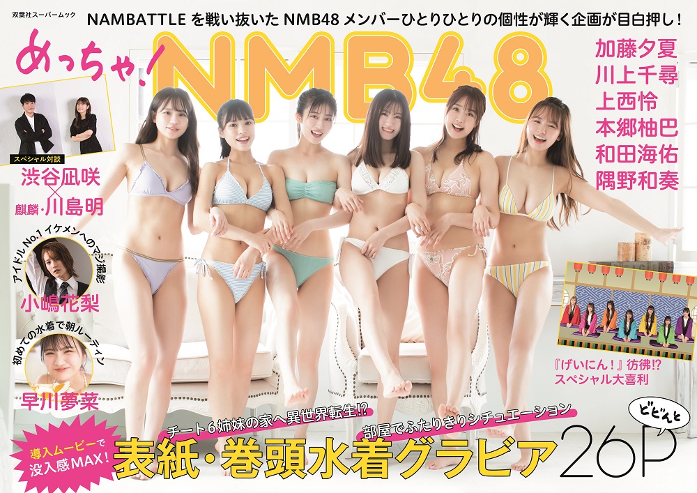 また、『NAMBATTLE~愛~』で優勝し、27thセンターに立つ川上千尋の「幼少期から女王になるまでの軌跡」に迫ったロングインタビューや、渋谷凪咲が「どうしても感謝を伝えたい!」と実現した麒麟・川島明との対談、新澤菜央がプロデュースする「あざとかわいいデート7DAYS」、キャプテン小嶋花梨が挑戦した本気の「イケメングラビア」などが掲載される。