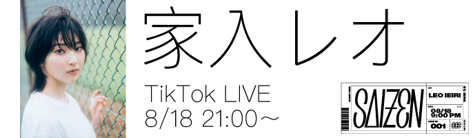 ■家入レオ、TikTok LIVE『SAIZEN』配信も決定
