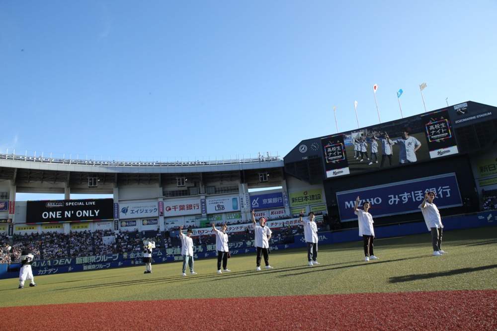 TikTokフォロワー数450万人超えのONE N’ ONLYが、8月11日にZOZOマリンスタジアムにて行われた千葉ロッテマリーンズ公式戦(対福岡ソフトバンク戦)の試合前スペシャルライブを行った。
