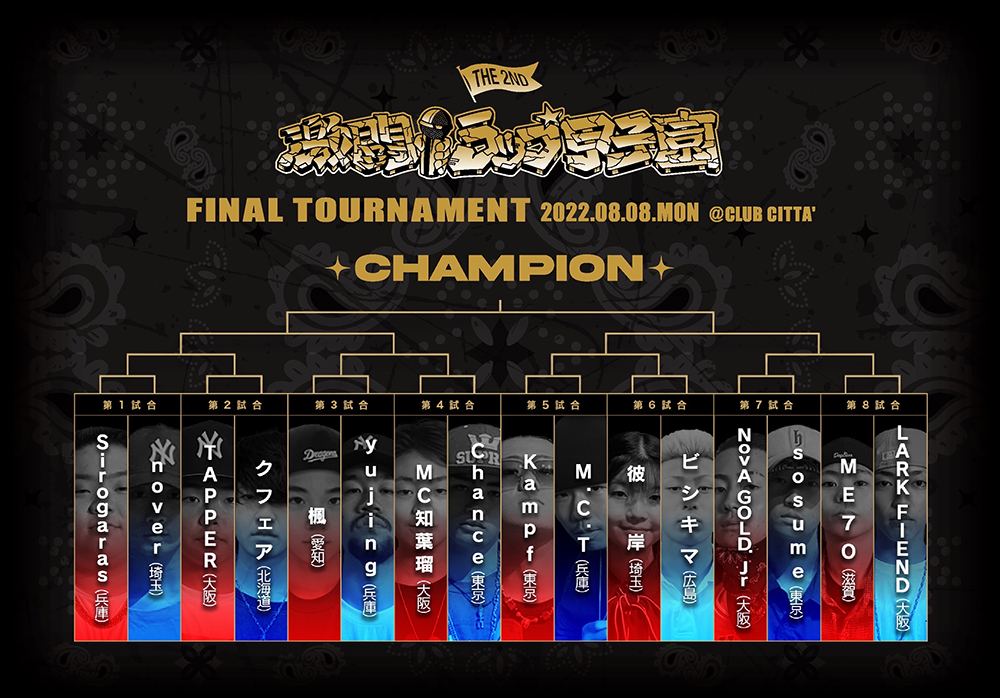 前回大会のリベンジャー5名、初出場11名の計16名で行われた決勝大会は、予測不可能な衝撃の展開の末、広島のビシキマが初出場で初優勝を飾った。若いリリシストたちの激闘をぜひこの機会に楽しもう。なお、この映像はアーカイブ配信は予定されていない。