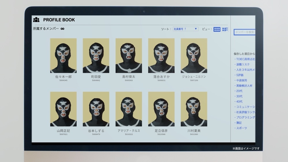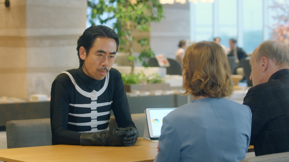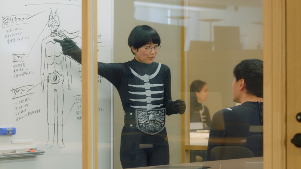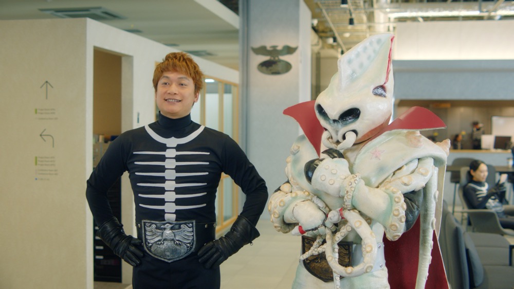 地獄の軍団ショッカーのオフィスで、組織の雰囲気が変わったことに気づく、幹部のイカデビル。香取慎吾に理由を聞くと、「カオナビ」を導入したことがわかる。覆面を外した顔とそれぞれの才能についての情報が共有されたことで、人材の最適配置が進み、組織全体のモチベーションが上がっただ。暗く抑圧的だったオフィスは、明るくオープンな雰囲気に。個性を活かした職務を担当するようになったショッカー戦闘員たちから、新しい目標やアイデアが生まれてくる。戦闘員たちと語らうイカデビルも、組織力の向上を実感しているようだ。