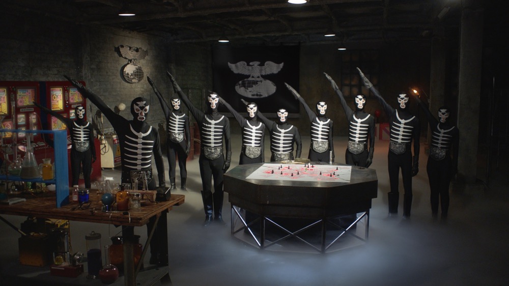 覆面で没個性だった地獄の軍団ショッカーに、「カオナビ」を導入した理由について会話する、ショッカー幹部のイカデビルと香取慎吾。「コミュニケーション能力」「分析力」など、それぞれのショッカー戦闘員の才能が可視化されることが理由のひとつだったと、香取が語る。さらに、導入企業シェアが第1位であることも、後押しになったそう。こうして才能が活かされていけば、仮面ライダーにも勝てるかも……とほくそ笑むふたり。ショッカー戦闘員たちとイカデビルの組織内コミュニケーションもさらに円滑になってきた。