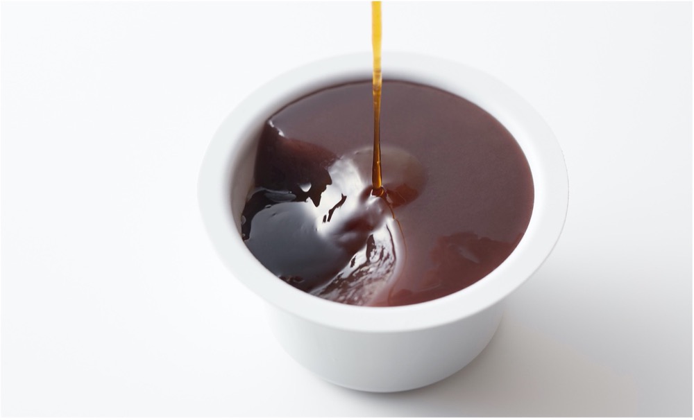 「ディーン・フジようかん」は食べ方にもひと工夫。最初のひと口で水羊羹のみずみずしさを味わったあと、別添のコーヒーソースをかけることで豊かに広がるコーヒーの風味も楽しめる。コーヒーソースは、インドネシアのアチェ州ガヨ地区のコーヒーを使用しており、フローラルなフレーバーと濃厚なボディかつ爽やかな味となっている。