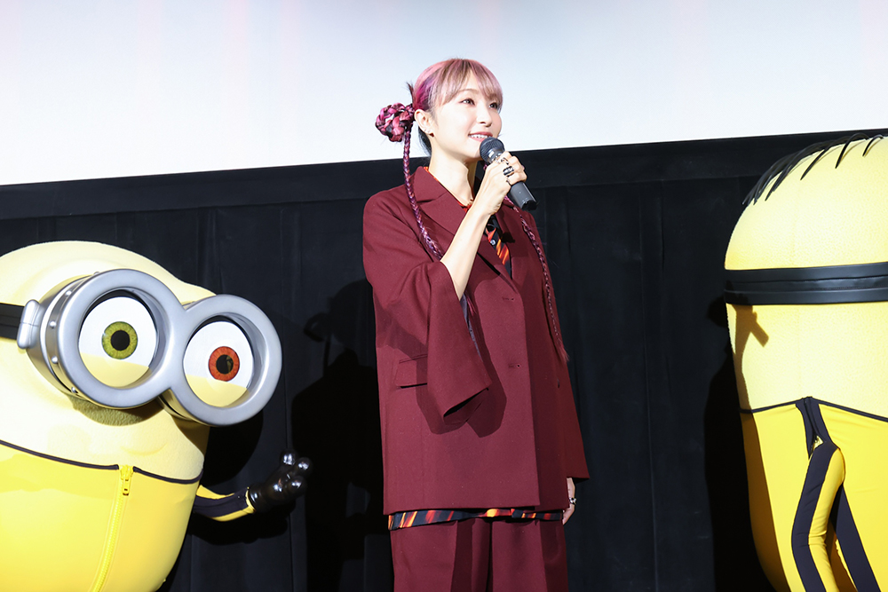 また、『ミニオンズ』シリーズへの声優としての参加については「『ミニオンズ』(2015年)で初めてゲスト声優として参加させていただいたのですが、リアルに自分がミニオンの世界に入られるというのは幸せです!」と感激。