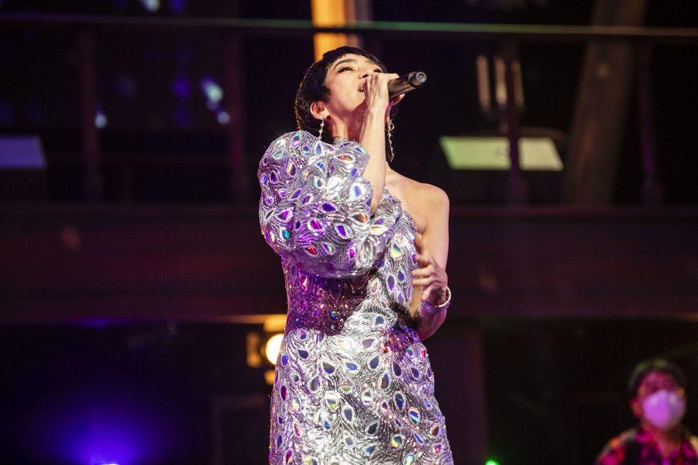 舞台の中心を担っているのはもちろん、アイナ・ジ・エンドだ。“楽器を持たないパンクバンド”を掲げるアイドルグループ、BiSHのメンバーとして活躍しているアイナは、自身のソロ活動の他、東京スカパラダイスオーケストラ、DISH//などの作品に参加するなど、シンガーとして高い評価を得ている。今回のステージで彼女は、全身全霊でジャニスを熱演。見どころは多いが、特に魂をむき出しにした「Cry Baby」の歌唱には強く心を動かされた。それはまさに、愛と音楽を求めて続けたジャニスの姿そのものだ。