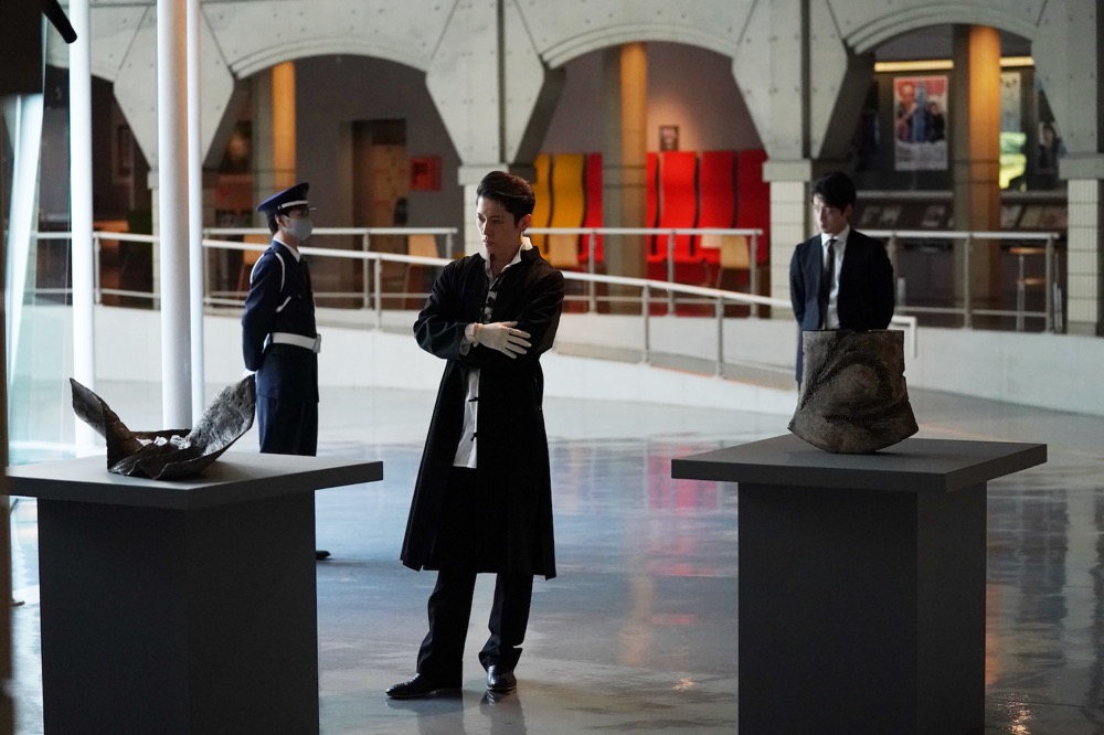 今回到着した場面写真でも、どこか決意を秘めた眼差しで兼高と向き合う意味深な場面写真や、赤い光に包まれた空間で祈りを捧げる怪しげな儀式を行う様子、趣味である美術館巡りに興じている姿など、一般的なヤクザのイメージからはかけ離れた、ミステリアスな魅力が満載の様子が切り取られている。美しいだけではない、闇に秘めた何かを隠し持つ十朱という男の謎は深まるばかりだ。