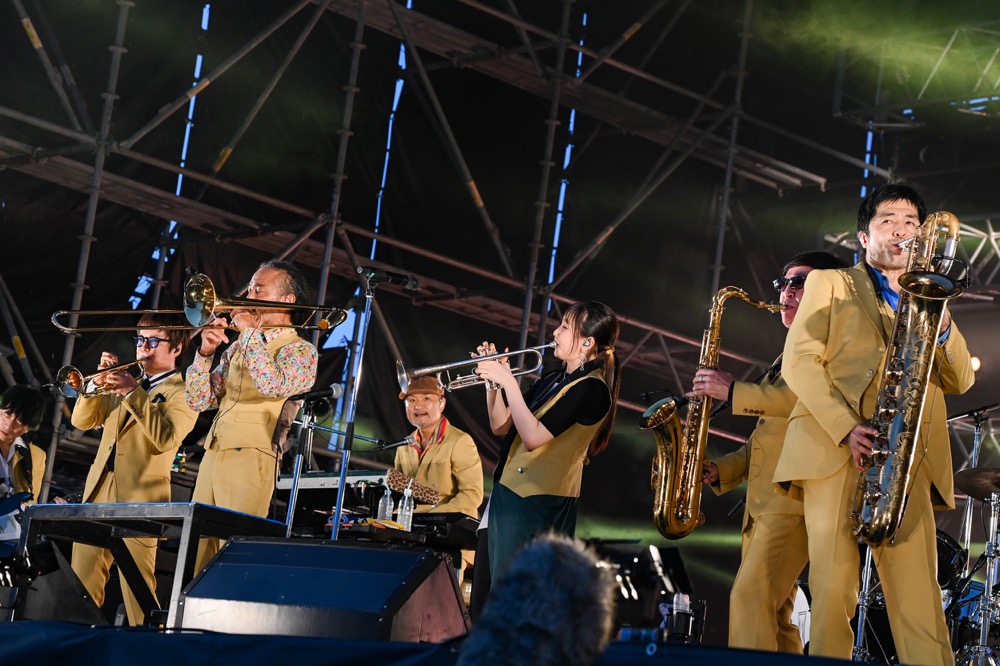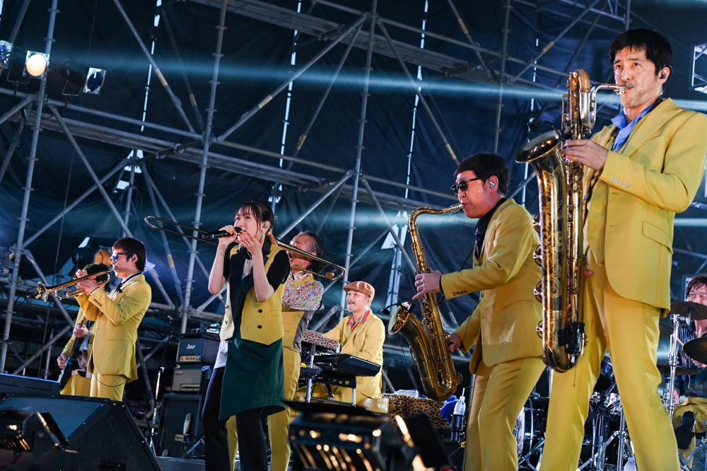 8月までを夏と捉えるなら、スカパラが今年の夏、最後に演奏する曲として「Paradise Has No Border」が披露された。「みんな、声は出せないけど、カラダを使って楽しさをアピールしてくれ!」というGAMO(Tenor sax)の声に応えるように、オーディエンスも声は出さずとも全力で盛り上がり、楽しさと喜びに満ち溢れたスカパラのステージは終了した。スカパラメンバーが口々に「どうもありがとう!」とオーディエンスへの感謝を伝えるなか、谷中が「川上洋平に大きな拍手を! 幾田りらに大きな拍手を! スカパラにも拍手を!」と言うと、ひと際大きな拍手が会場中に溢れた。