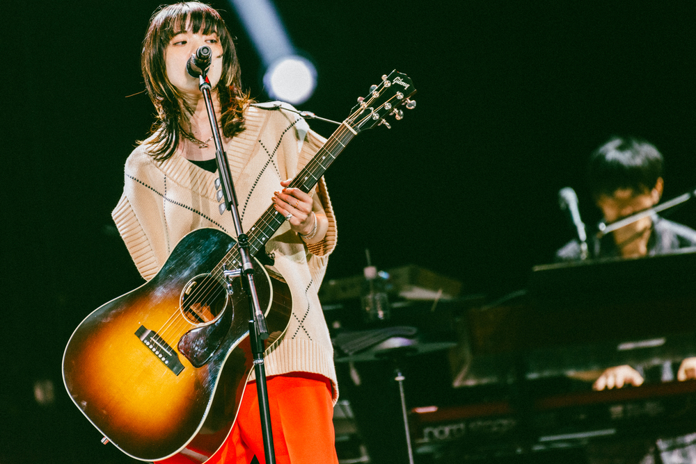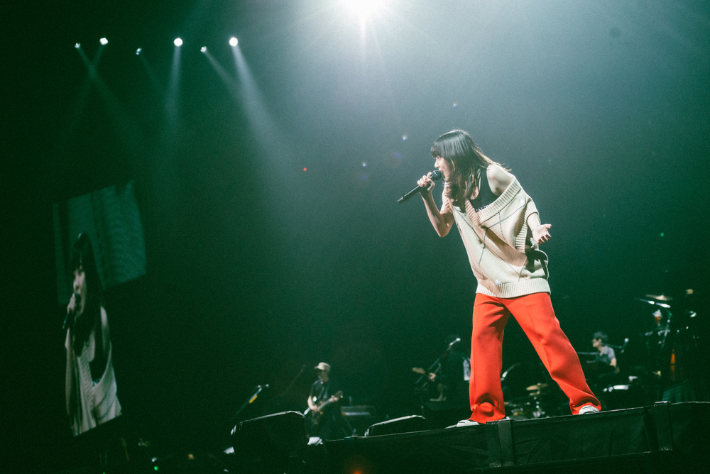 「まだまだ完璧とは言えないですけど、こうやって100パーセントお客さんが入れられるようになって、みんなと熱い空間を過ごせることがホンマに幸せです。でもここに立てるのは絶対に自分の力だけじゃなくて、一緒にライブを作ってくれてる皆さんのおかげやと思ってます」と感謝を伝えると、高ぶった気持ちをいったんクールダウンするかのように「ハート」をしっとりと届けて、重厚なイントロからこの日最後に演奏されたのは“君も大人になったら恋をするんだよ”とポジティブなフィーリングを伝える「双葉」。長かったツアーに想いを馳せながらも、最後は笑顔で歌い切った。