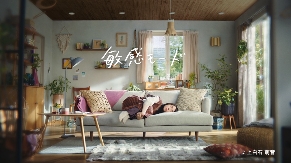 今回は設定がお休みの日ということだったんですけど、膝抱えてポツンと座ってる感じとか、普段の私と一緒だなぁと思いながら撮影していました。1年目と2年目はオフィスでのシーンだったんですけど、またさらにちょっと年齢を重ねて、少し仕事の内容とか責任とかも変わってきた年頃なのかなぁと思っています。Q:ご自身が「敏感モード」だと思うときはどんなときか教えていただけますか?
