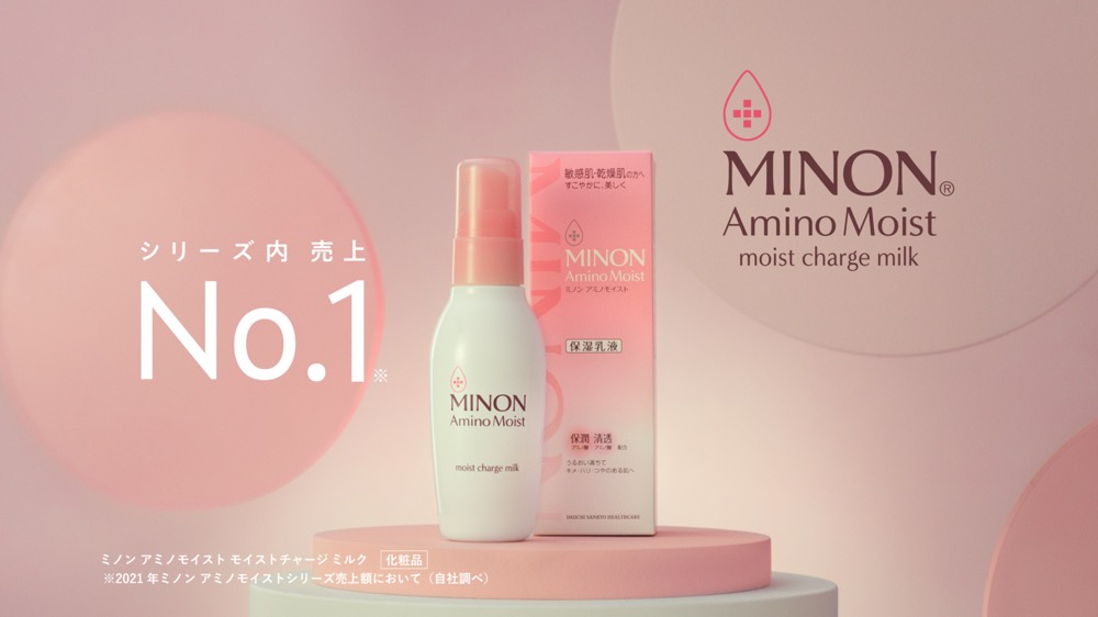 今回のCMはお家でふとした瞬間に敏感モードに入ってしまって、心も肌もどこか自信がなくなった設定から始まっています。そんなときに“ミノンアミノモイスト”の乳液で、気持ち良く心も肌も前向きで自信に溢れていくような、そんなシーンが印象的なCMになっていると思います。特に“ミノンアミノモイスト”の乳液が肌にスーッと馴染んでいくカットにご注目いただきたいです。
