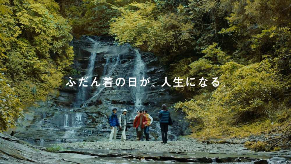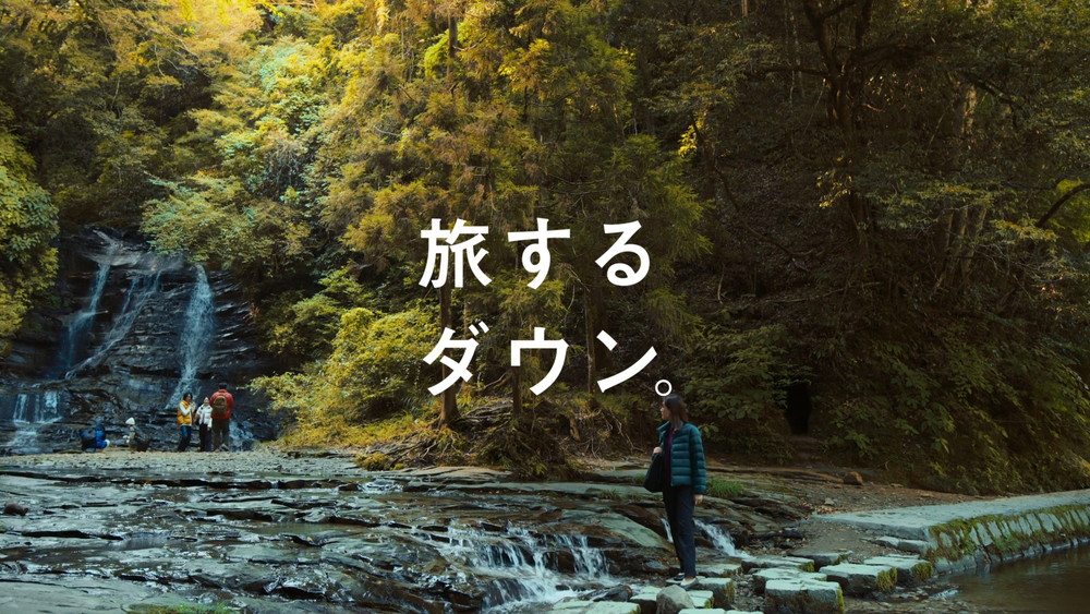 出勤途中、渓谷行きのバスを見て思わずちょっと遠くに行きたくなった綾瀬。カバンの中にあるウルトラライトダウンを確かめると、クルッと方向転換してそのままバスに乗り込む。秋の渓谷で少し肌寒さを感じた綾瀬はウルトラライトダウンを羽織ってリモート会議に出席。会議を終え散歩をしていると、バラエティ豊かなウルトラライトダウンを着た友人たちと一緒にいる松下洸平と偶然遭遇し、記念写真を撮ってあげる展開に。