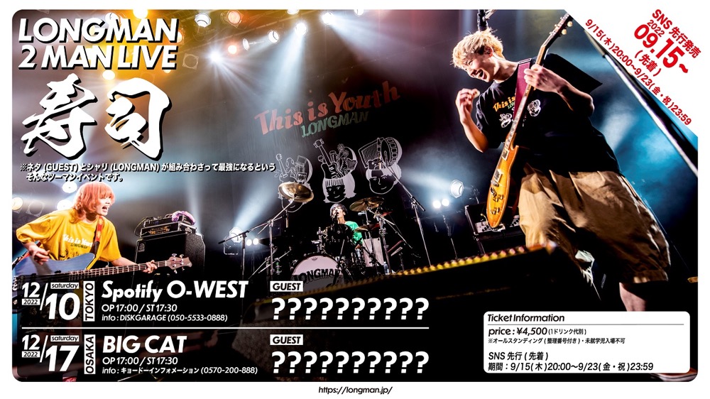 現在、LONGMANオフィシャルSNS先行チケット(先着)受付中。
