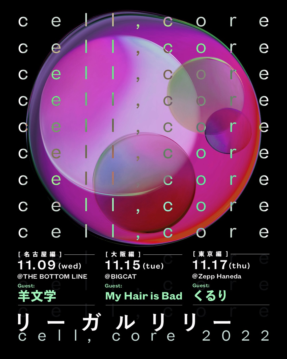 11月からはじまる『cell,core 2022』のチケットは現在チケットぴあとe+にて一般発売中。名古屋、大阪公演はすでにソールドアウト。東京公演も早めにチェックしよう。