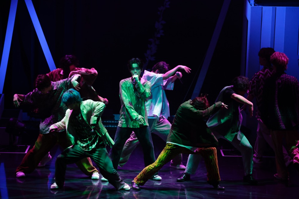 1曲目は、メンバーのKEVINが作詞作曲を手がけ、 FUMINORI・FUMIYAが振り付けを担当した「OZ」。ひとり振り向いたSHOOTのソロ歌唱から始まる歌詞には、<誰のせい/やられていく>=SEIYAや<抱えてきた/悔しい思いも>=TAKUYA、<You’re my>= YUMA、<Hello Key>=HARUKIなど、メンバー全員の名前とともに、<Buddy>というファンの呼称も盛り込まれた、ファンに向けたラブソング。グループ結成までの旅路を振り返り、信じられる仲間たちと出会えた物語を体現するかのように、ひとりずつ丁寧に歌い継ぎ、メンバー全員で何度もハートを描いて、会場に集結したBuddyに愛を贈った。同じくKEVIN作の「YOHO」では、旅路の途中でのぶつかり合いをラップやダンスバトルで表現。その後、がっちりと手を取り合って、メンバー全員で右手を高々と掲げて深い絆を示し、さらなる広い世界へと向けたあらたな旅路は、明るく賑やかにはじまりを告げた。