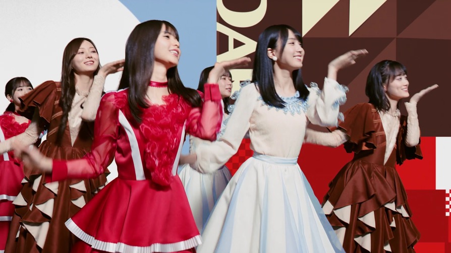 また、楽曲に合わせて、チョコレートの甘い世界に誘うようなダンスやキュートな投げキッスダンスをノリノリで披露。赤、茶、白のコントラストが華やかなオリジナルの衣装にも注目だ。