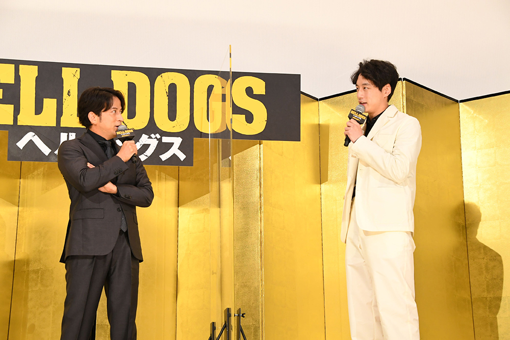映画『ヘルドッグス』の公開御礼舞台挨拶イベントが9月22日に東京・丸の内TOEI スクリーン1で行われ、主演で関東最大のヤクザ組織に潜入させられることになる元警官の兼高を演じた岡田准一、制御不能なサイコボーイ・室岡に扮した坂口健太郎、そして原田眞人監督が登壇した。