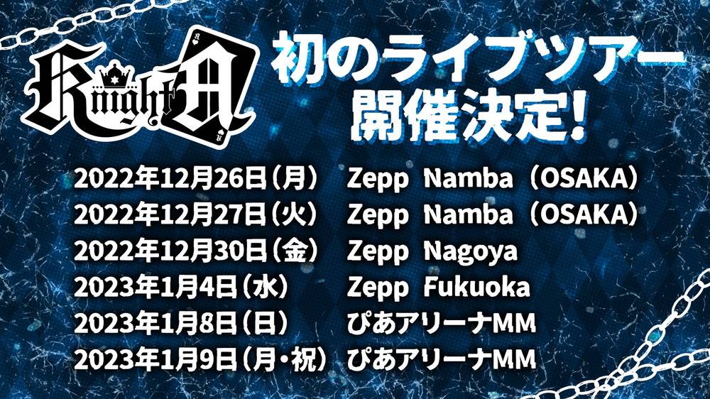 9月24日と25日、2日間全3公演の東京ガーデンシアターでのライブを成功させたKnight A – 騎士A -から、自身初のライブツアーの開催が発表された。