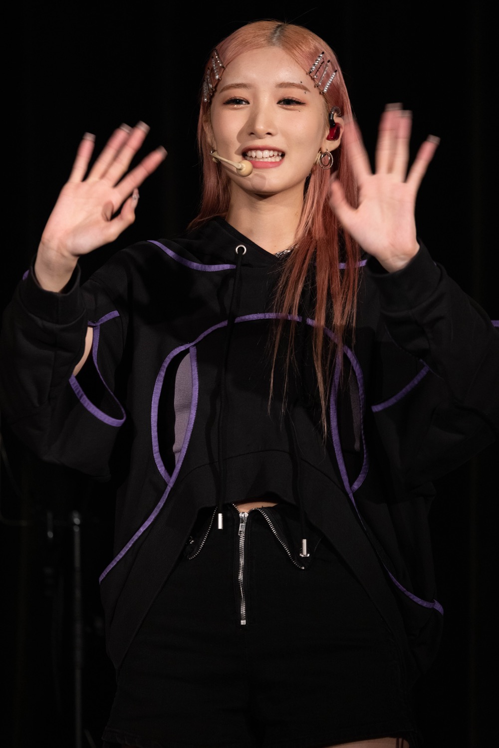 ショーケースということで、彼女たちのパーソナリティを知るためのトークパートも設けられた。グループのエネルギー担当だという元気なイレのストレス発散方法は、「メンバーとたくさん話す、寝る、日記を書く」ことだそう。韓国語でのラップメイキングもこなす日本人メンバーのユキは、「最初は韓国語もできないのに、ラップとラップメイキングをするのは負担でした。でも、練習することで上手くなっていきました」と激白し、特技だという「ドラえもんとジャイアン」のモノマネまで披露した。「ファンの皆さんがかわいくてたまらない!」というチェインは、客席のファンを先導してペンライトの光でウェーブを起こし、「多彩なカラーのあるグループ」とチームを評したゴウンは、「ユキちゃんのお母さんがドラえもんのパン(どら焼き)を差し入れてくれて、抹茶味を食べました」というTMI(小ネタ)を披露。ドシが「今、J-POPにハマっていて、King Gnuをよく聴いています」といえば、「目が悪いのでレーシック手術をしたい」というスアンに、イレとユキが「私もやりたい! 一緒に行こう」と賛同。そして最年長のジウンは、「今まで見せたことのない姿を見せたい!」と考えながらいつも練習していることを明かした。