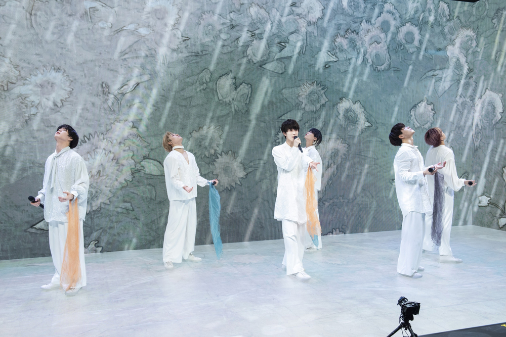 3曲をふたつのチームで制作し、全部で6パターンが完成。映像チェックのときにも追加アイデアや修正案が飛び出し、それを踏まえて江橋氏が調整。スタジオパフォーマンスではそれぞれの楽曲の歌詞、メンバーたちのパフォーマンス、そして映像が融合し、ここでしか見られない作品となった。