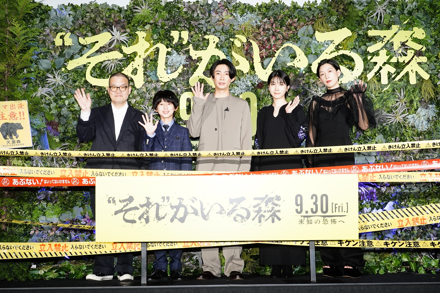 映画『“それ”がいる森』の公開前夜祭が9月29日に丸の内ピカデリー1にて行われ、主演の相葉雅紀をはじめ、松本穂香、上原剣心、江口のりこ、中田秀夫監督が登壇した。