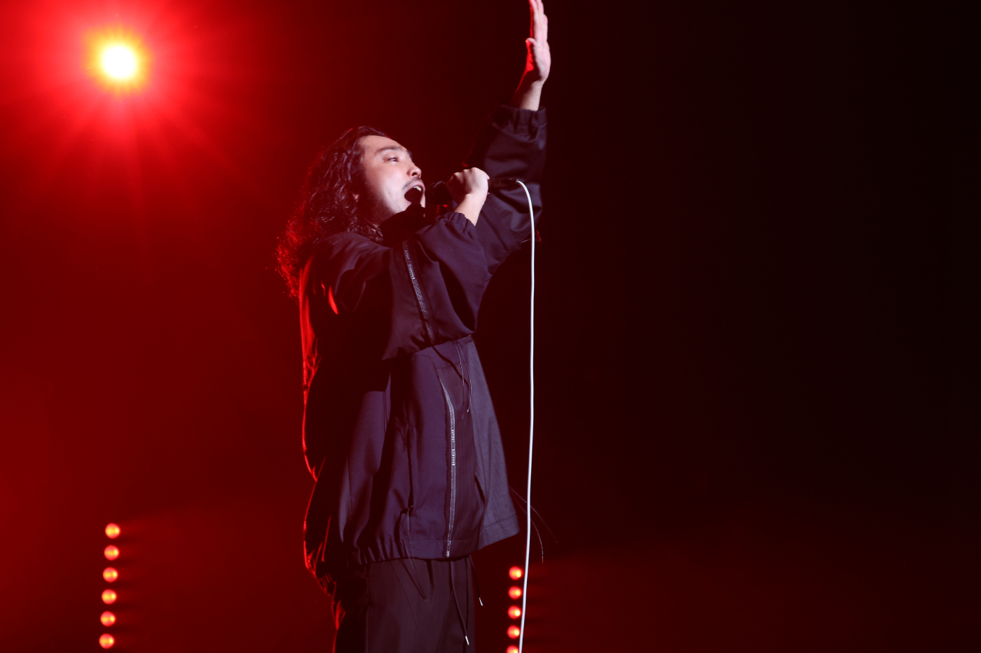 さらに「パッと咲いて散った灰に」「堕天」と疾走感ある楽曲を立て続けに披露し、R-指定の力強い歌声、松永の華麗なDJにリスナーたちは手を上下左右に振って盛り上がる。