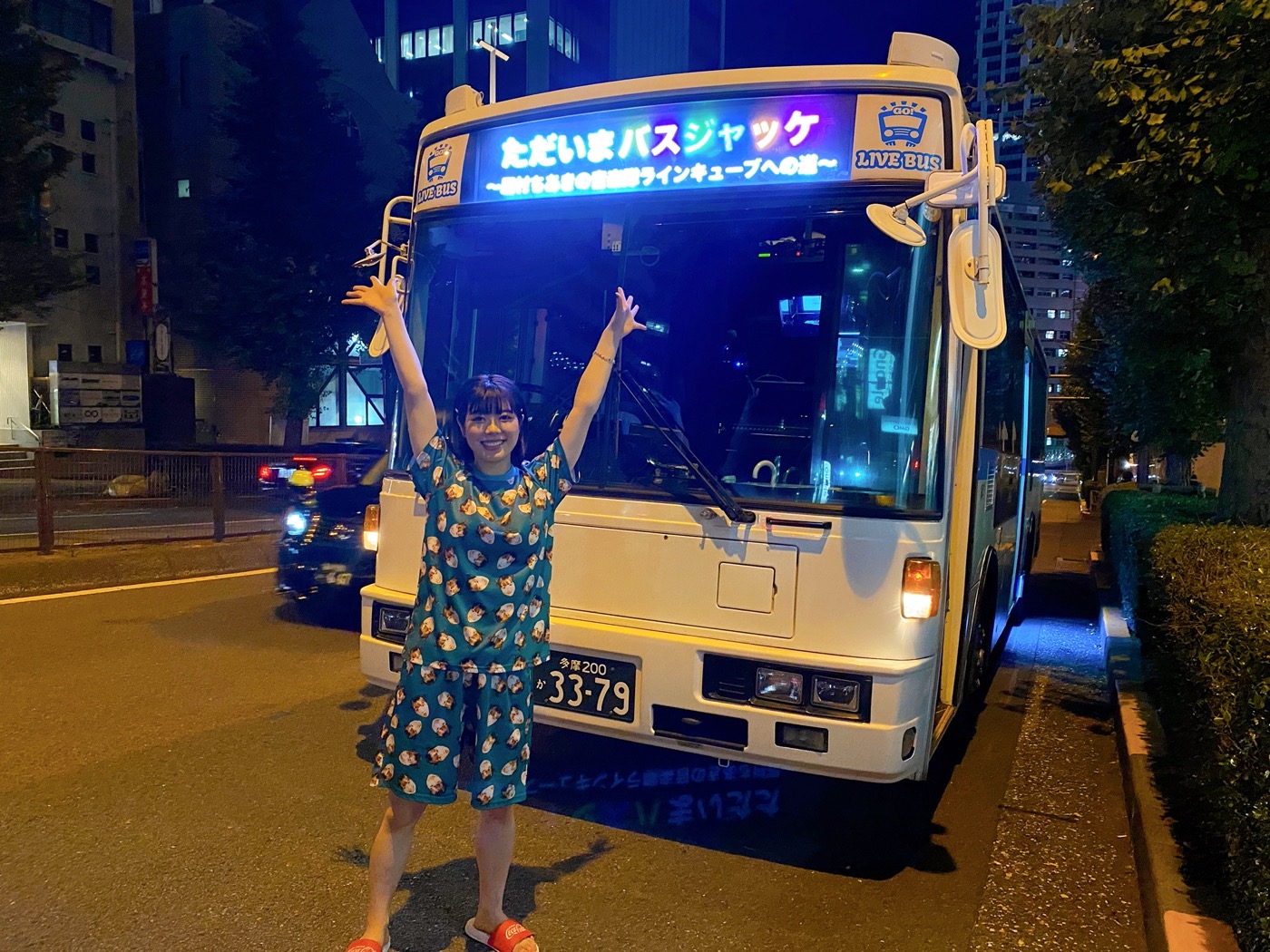 夢の中で作ったのだという「秘密の恋」、“嫌なことがあってもお肉を食べれば元気になるんじゃない?”というメッセージが込められた「肉食え」――2つの新曲は「バンドでやったらかっこいいだろうなあ」と言っていたが、バンド編成でのワンマンライブへの期待を高めてくれた。また “LINE CUBEでやりそうランキング1位の曲”だという「悪役」は、LINE CUBEの前をまさに通り過ぎるタイミングで披露された。そしてラストに「ピッコロ虫」が届けられて、バスジャッケ1部は今度こそ本当に終了。「バイバーイ!」と笑顔を輝かせた彼女は、マユムラーの大きな拍手で見送られていた。