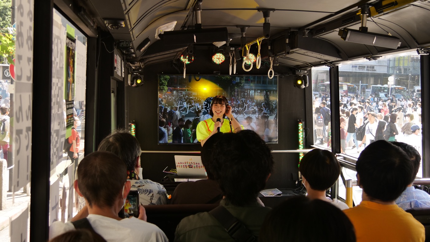 ここでは、10月1日に新宿、10月2日に渋谷で行われたバスライブのうち、渋谷での第1部の模様をレポートする。