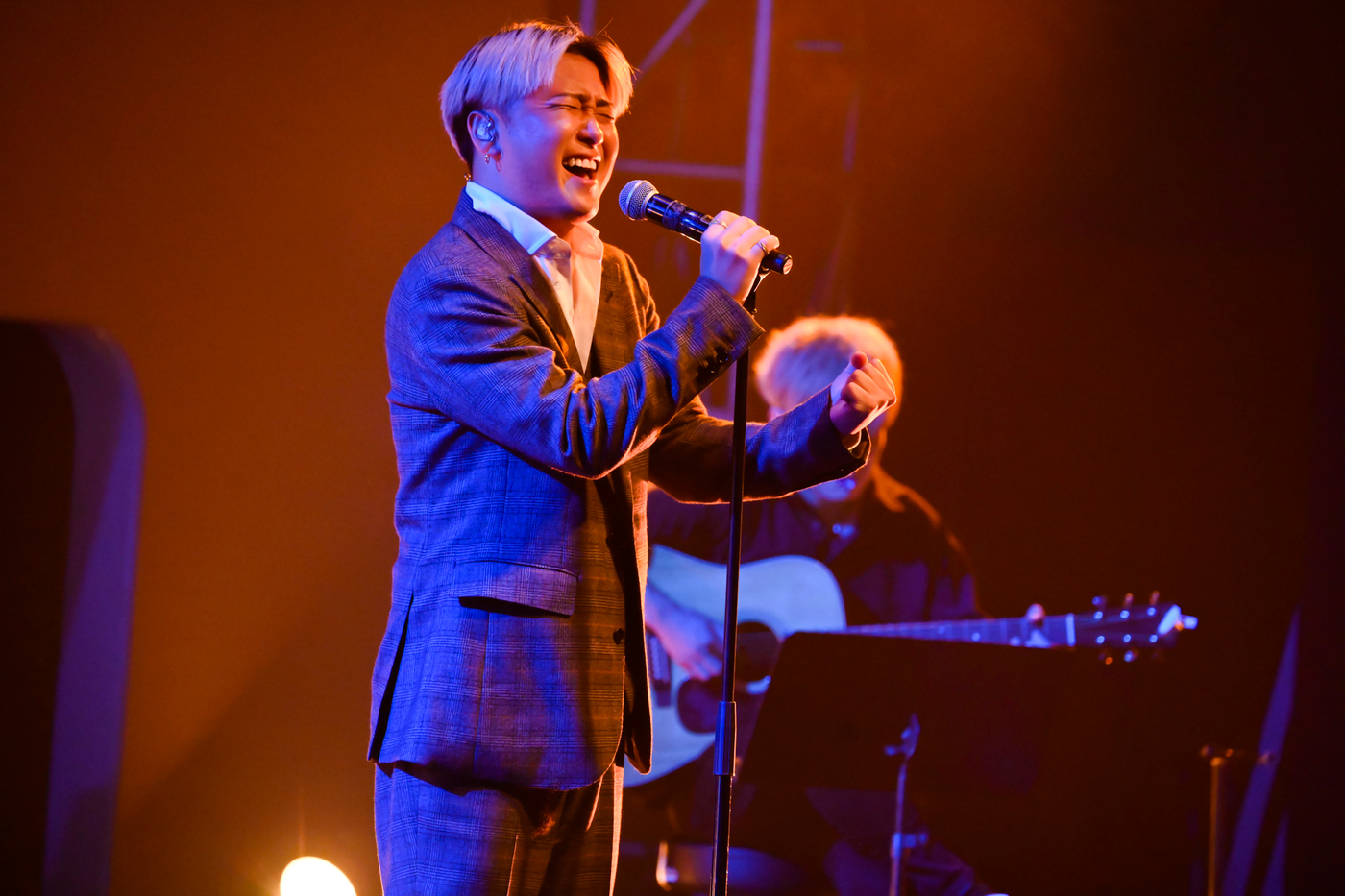 続いてアコースティックギター1本をバックに披露したのは、斉藤和義のカバー「歌うたいのバラッド」。太くハスキーさのあるボーカルは実に聴き心地が良く、観客もただただ無言で彼の歌声に聴き惚れていた。