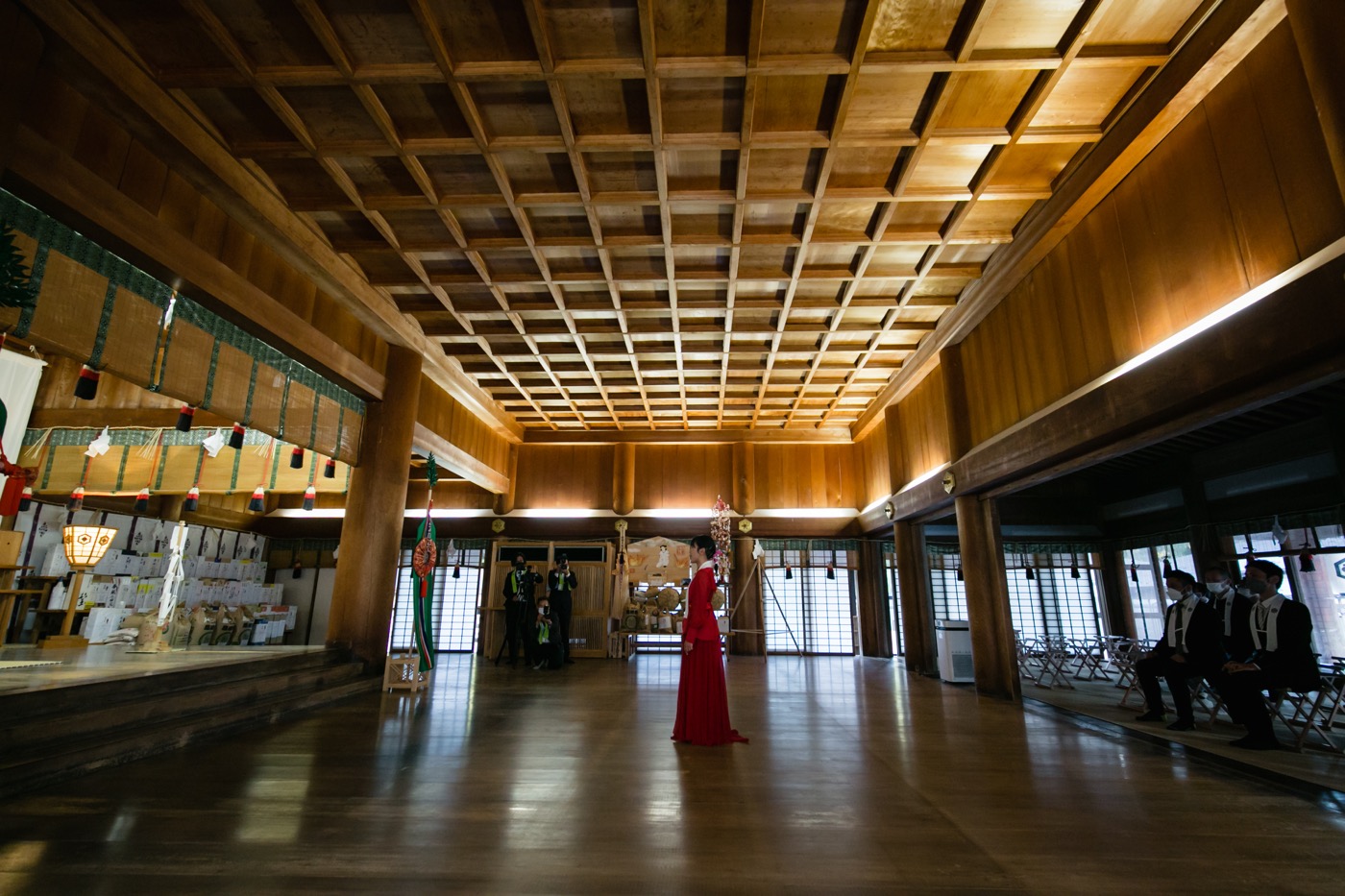 神聖な雰囲気のなかアカペラで歌い切り、映画と共に世界をめぐった主題歌を出雲の神々へ奉納。あわせて映画『神在月のこども』のDVD奉納も行われた。