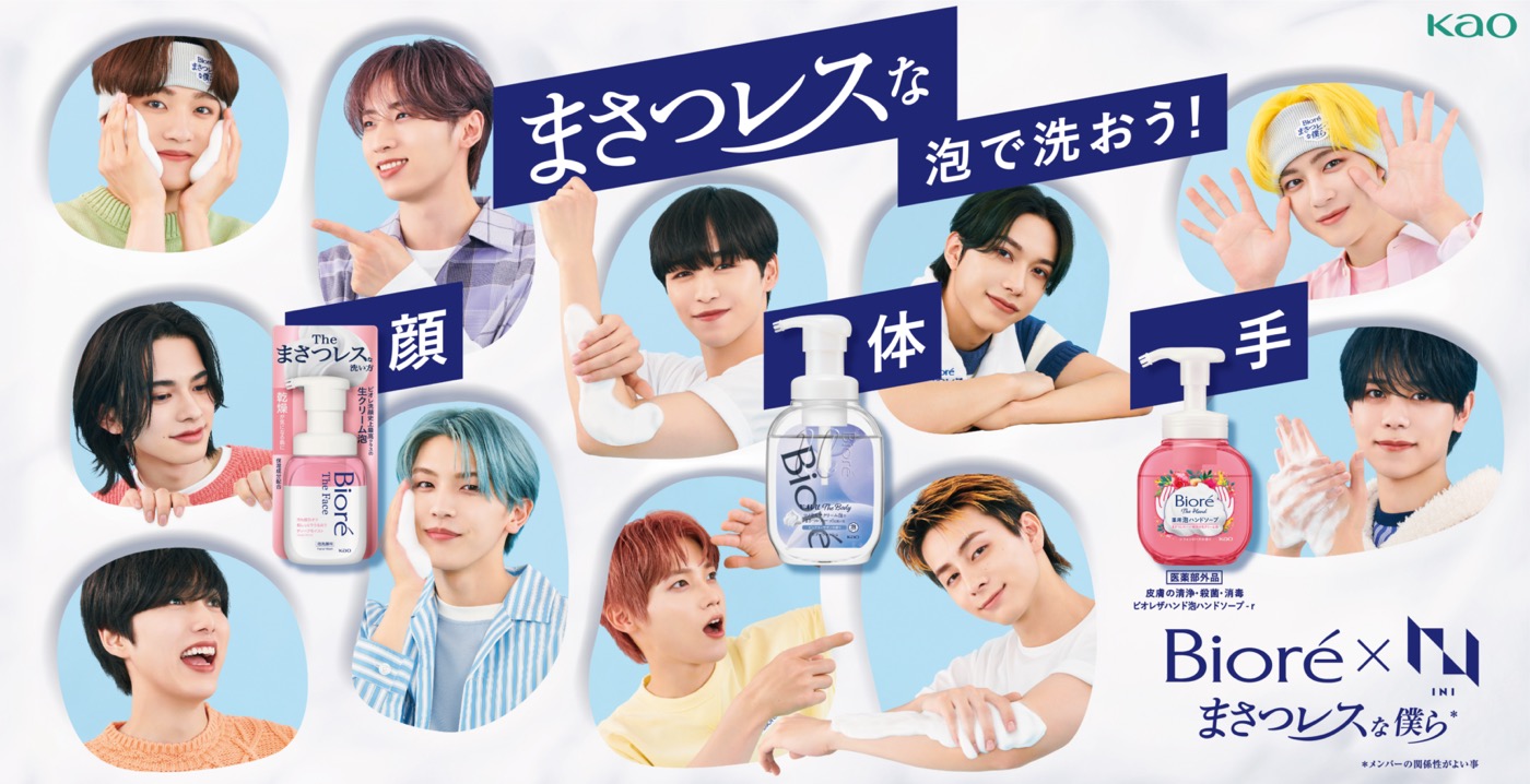 INIがアンバサダーを務める、花王のスキンケアブランド“ビオレ”の『Biore×INI まさつレスな泡で洗おうキャンペーン』が10月14日より開始される。