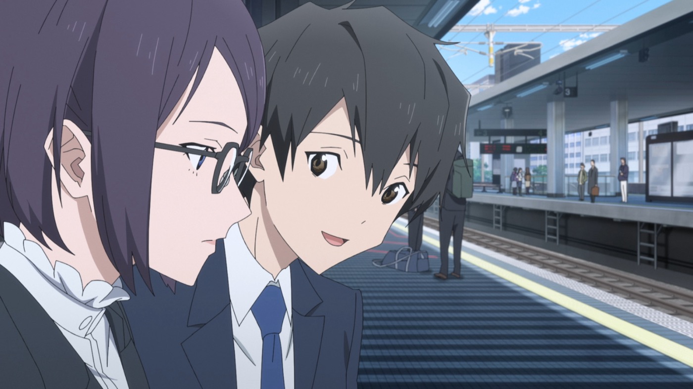『僕愛』の映像の冒頭で映し出されるのは、須田景凪による挿入歌「落花流水」とともに、大学を卒業して虚質科学研究所で働き始める暦と和音(橋本愛)の姿。自身に“パラレルシフト”が起こっているかどうかを確認するための装置“IP端末”の不具合をなくし、端末の信頼度を上げることを目標とするチームへと配属となり、研究に没頭しながらも充実した日々を送るふたりの様子が伺える。そして、電車内で突然何かを思いつき自身の洋服の袖をメモ代わりに使ってしまう、研究者らしい暦の一面も描かれている。