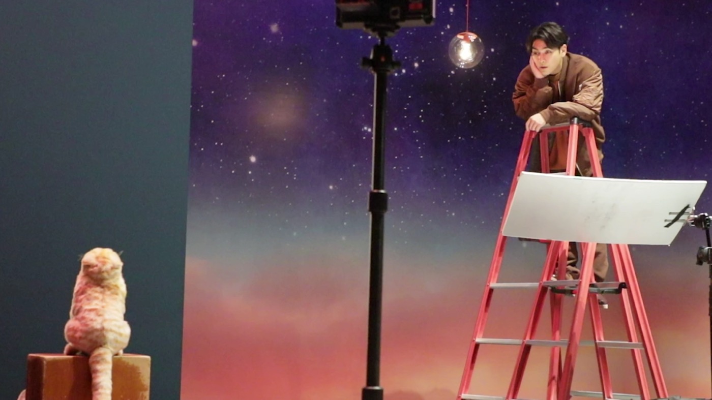 ――今回の脚本はどのような思いを込めて書かれましたか?苦労した点など、制作秘話がございましたら併せてお聞かせください。岩崎:二つのお話が繋がって一つの物語になる」というオーダーがありまして。そして、お洋服を何回か着替えたいっていう。これだけで結構な無茶ぶりというところがあったんで(笑)。でも、お洋服だからといってお店屋さんのお話とかではないお話が良いっていうのもあって。それと、僕に依頼が来ているというところで、ちょっと笑えるというか、ユーモアがあるお話にしなきゃいけないなっていうのはあって。それで、考えてたんですけど、「着替えるってなんだろうな」とか思ってて、「北風と太陽」とか、あんな話だったらちょっとファンタジックな、良い感じになるのかなって思ってて。ミーちゃんのような猫はきっと人間が感じるよりも、木漏れ日に対して色んなセンサーを人間よりたくさん持ってるんじゃないかな、下手したら味がしたりもするんじゃないかなとか、そんなようなことを考えながら、広げていきましたね。