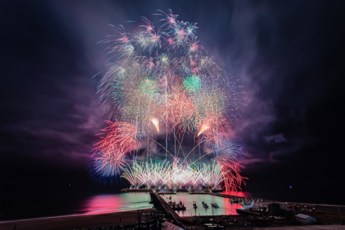 茅ヶ崎漁港の堤防から打ち上げられる花火は、花火競技会で総理大臣賞を受賞するレベルの屈指の花火師達が全国から集結し作られた、世界最高水準の花火玉。