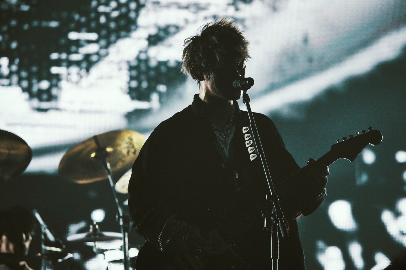 そう語ったあと、山中がエレキギターを鳴らしながら歌い始めたのは「5150」。4人で鳴らすバンドサウンドは絶対的な光源として輝きを放ち、かつての山中が絶望から希望を目掛けて綴った言葉が、新たな意味を伴ってアリーナに響いた。ここに来て初めてスクリーンに表示されるTHE ORAL CIGARETTESのロゴ。印象的な目玉マークを目掛けて腕を伸ばす観客たちは、高揚しながら心の中でシンガロングする。本編ラストは「BLACK MEMORY」。スクリーン上の映像も見逃せない。熱量の高いバンドサウンドに重なるのは、DNAを彷彿とさせる二重螺旋や血管を通る赤血球に見えるモチーフ、つまり新しい生命のイメージだ。4人にとってはもう何度も演奏してきた曲だが、鈴木のギターソロを筆頭に、バンドの音はかつてなくみずみずしい。初期衝動とともに何度でも生まれ変われるのがロックバンドの素敵なところだ。