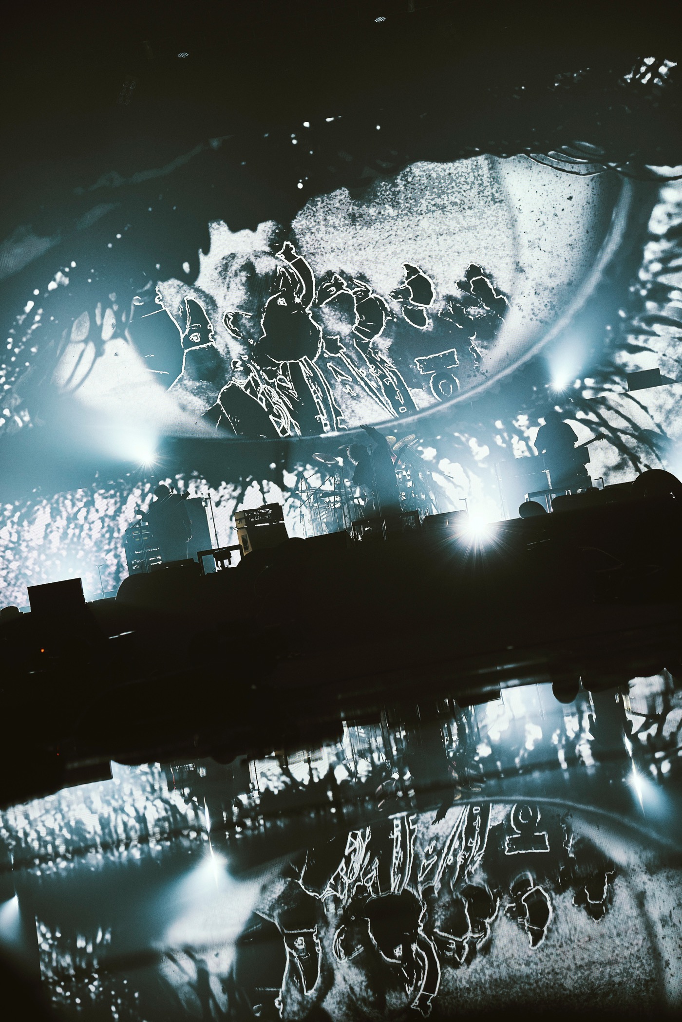 「Naked」までを終えて幕間映像。神にも愛されるほどの美貌を持った女性が、海の神ポセイドンと関係を持ったことで、女神アテネの怒りを買い、化け物に変えられてしまう――。ギリシャ神話にあるメデューサ誕生のストーリーがここで語られた。その後「嫌い」を演奏したシーンは観客にとって忘れられない場面になったであろう。“演出のため次の曲は動かないでください”という文字が表示されたあと、バンドは、メデューサの怒りや悲しみを体現するように壮絶な演奏を披露。スクリーンにはメデューサの目が、そして瞳の中には微動だにしない観客の姿が映っている。観客も演出の一部となり、「嫌い」の世界観が形作られたのだ。感染症対策ガイドライン下のライブ特有の静けさを逆手にとった演出であり、もちろん、バンドの提案に快く乗っかる観客の姿勢があってこそ成立する演出だ。メンバーも「みんな、めっちゃ固まるやん。俺、あんな景色初めて見た」と感動。