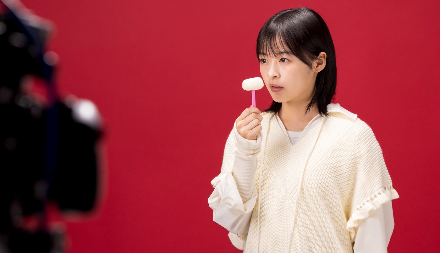 「おはようございます!」と真っ赤なかわいい衣装を身にまとい、撮影現場に入った森七菜。“雪見だいふく”の「おいしさの秘密」を森が紹介するシーンから撮影がスタートした。まずは、「つきたてのおもちは、おいしい!」と言葉でおいしさを表現するシーン。1テイク目から森ならではの俳優魂溢れる語りかけと表情で見事表現する。その演技に、監督からも「かわいい! 良い良い! 今のとても良い!」との声が! 監督との息もぴったりで、表情違いの演技についても細かく話し合いながら撮影を続ける森。思い描いていた以上の森の演技に、声を弾ませながらカットをかける監督。「かわいい! ふふっ!」と文句なしのご満悦な様子の監督に、思わず森からも「ふふっ!」と笑みがこぼれる。その後も順調に撮影が進んでいき、森自身も「よっしゃー!」と納得の、おもちのおいしさ溢れる新TVCMの冒頭カットに注目だ。