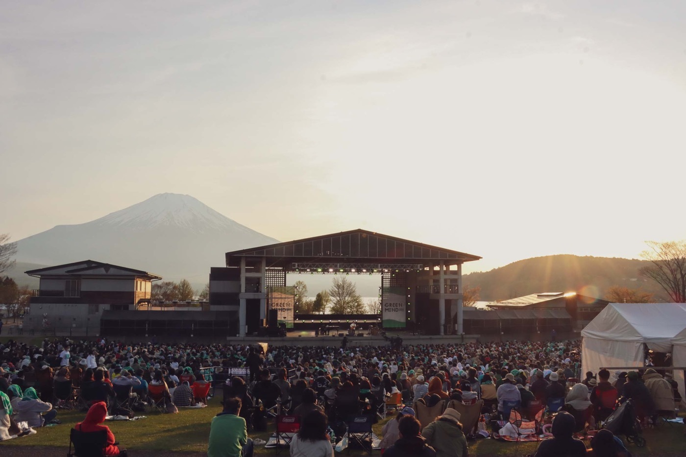 天候にも恵まれた快晴のもと、雄大な富士山をバックに繰り広げられた、最高のロケーションでのアコースティックなステージは圧巻。日が傾き出してからの心憎いライティングの演出も素晴らしく、美しい自然と心地よい演奏が最大限に楽しめる内容となっている。