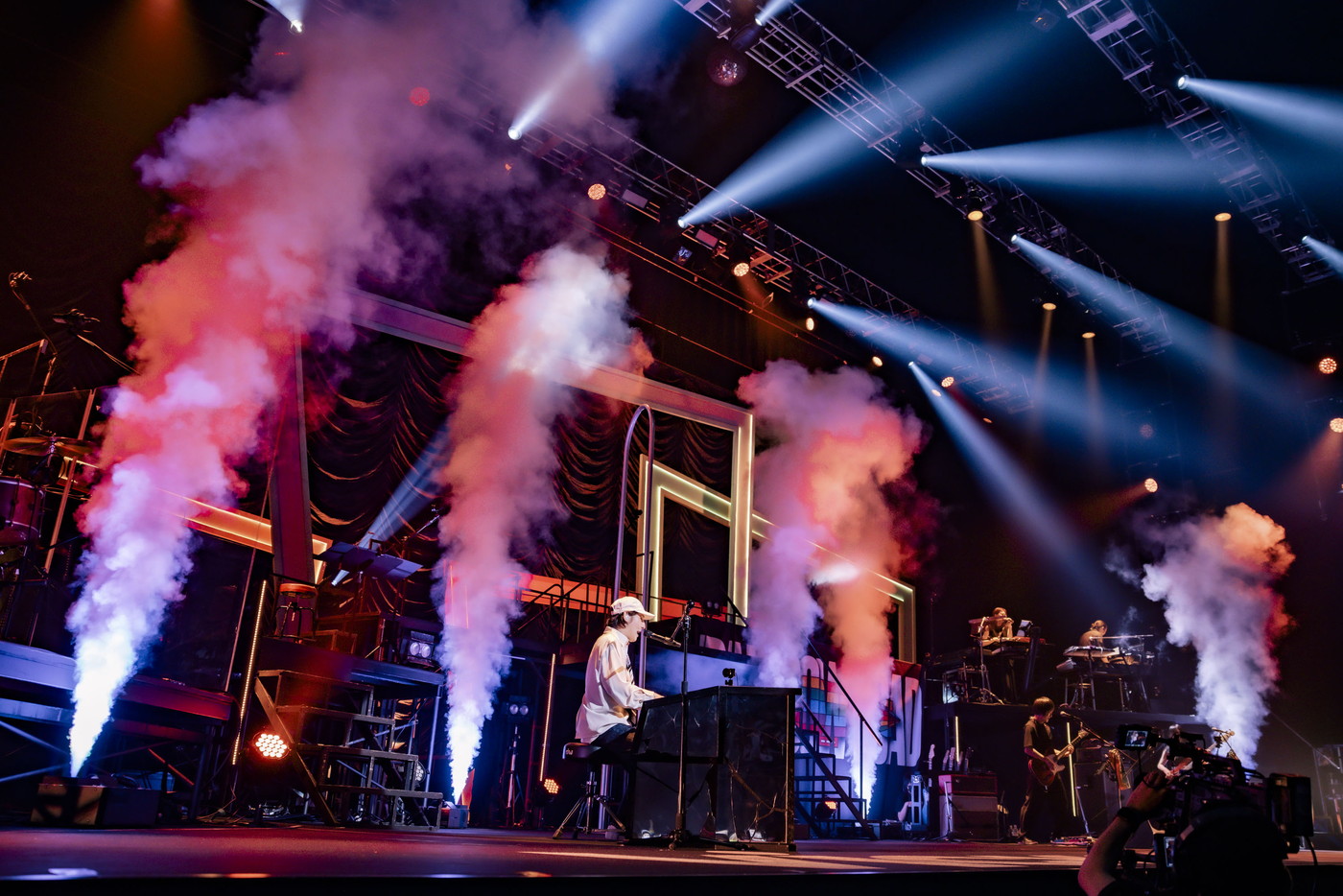前奏からひとつずつ楽器を増やしていく演出で賑やかに奏でられる「Slave of Love」は、コーラスの多用でQueenを思わせるブライトなメロディ。ステージを何度も歩き回り、大サビの“no no no”を繰り返し、観客と一体となって力強く拳を突き上げる。極め付けに拍手を煽り、「最高です」と笑う。「今日みんな来てくれて本当にうれしいです。みんな、僕はラブ!」と、シームレスに真夏のポップなラブソング「This Kiss」へとつなげていく。