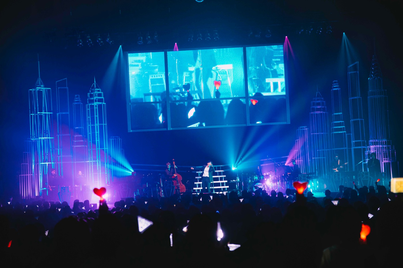 「やっとですね…。やっとこの瞬間を迎えられました。長かったです。このツアーの直前にコロナの時代に入ってしまって…。でもこうやって皆さんに会えて、感無量です。(高層ビルを模した)ステージセットも2年半前に用意したもの。2年半、僕の家に置いておきました(笑)。そんなY’S CITYに皆さんをご招待いたします!」とジョークを交えた日本語のトークも冴える。