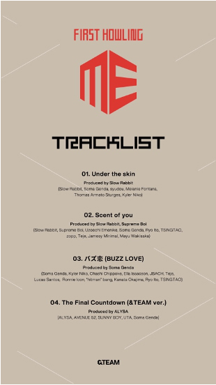 HYBE LABELS JAPAN初のグローバルグループ、&TEAM(読み:エンティーム)が12月7日にリリースするデビューEP『First Howling : ME』のトラックリストを公開した。