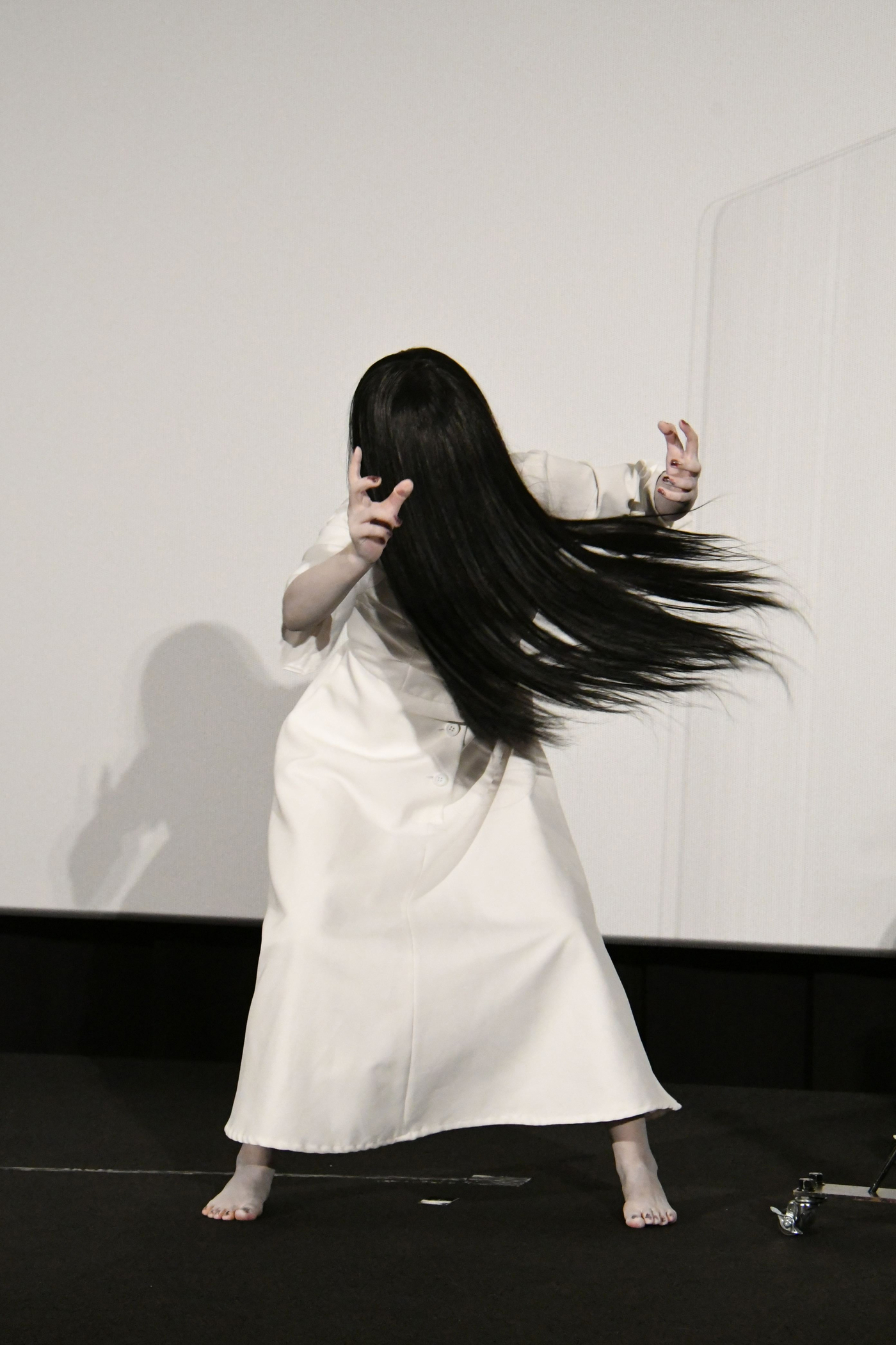 文華ととに貞子の呪いの解明に挑む自称占い師・前田王司役を演じた川村壱馬は「皆さんありがとうございます。前田王司を演じさせていただきました川村壱馬です。今日は最後までよろしくお願いします」、劇中で拡散したウイルスによって“大量拡散”した貞子も「皆さん今日は来てくれてありがとうございます!」と感謝の気持ちを念でアピールした。