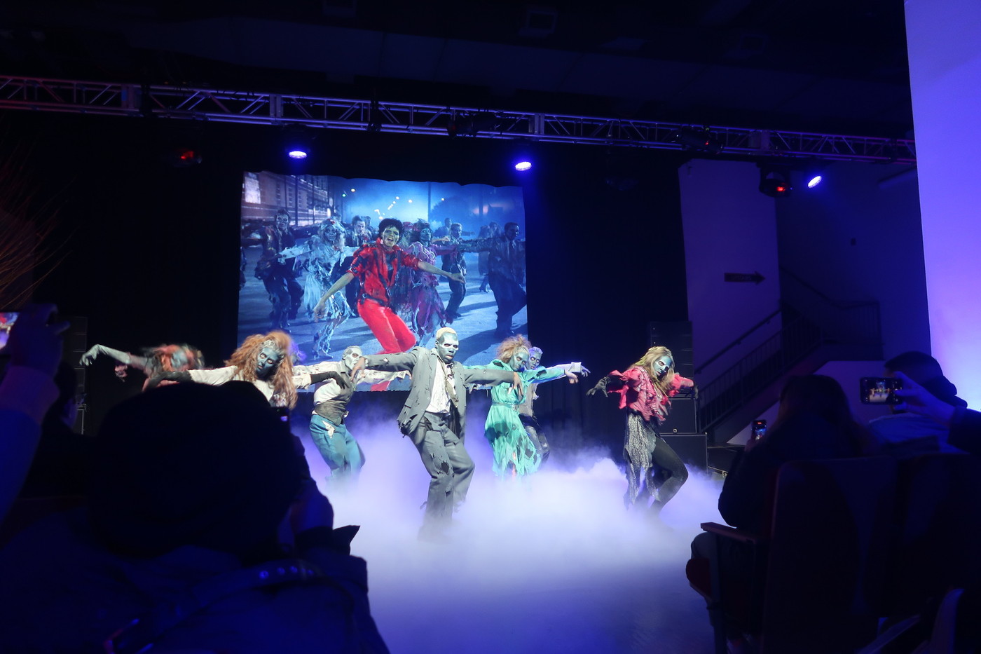 それに続く部屋には、「スリラー」のMVを彷彿とさせる映画館が待っていた。次のアトラクションに向かうときにお化け屋敷の扉を開けるようなドキドキがあるのも最高だった。中に入ってシアターの座席に座ると、40周年を記念して最新デジタル技術で今に蘇った「スリラー」のあまりに鮮明な4Kリマスター版が上映。しかし、なんと、途中からその鮮やかの映像の中から飛び出してきたかのように、本当にゾンビのダンサーが登場したから驚き!
