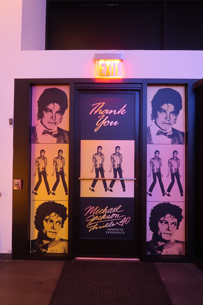 まず入り口を抜けるとすぐに、「ビリー・ジーン」のMVのセットが再現されていた。セットの中に自分たちがいきなり入り込んだような設定となっていて早速ワクワクする。トレンチコートの男もいるし、電話ボックスもあるし、カメラ屋さんのウィンドウもある。新聞紙も道を舞っていた。